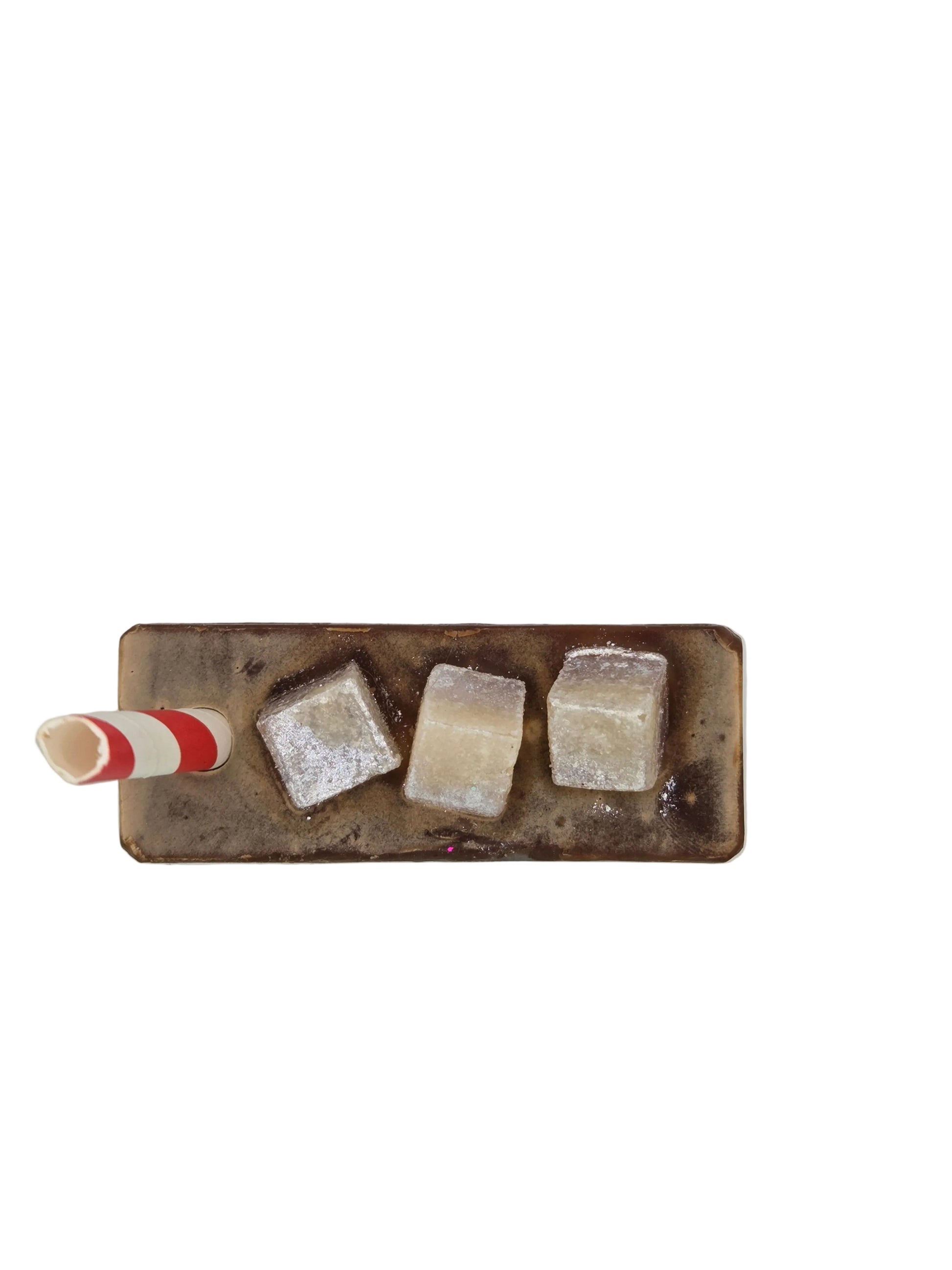 Ingredients: Olive Oil, Distilled Water, Coconut Oil, Shea Butter, Sodium Hydroxide, Hemp Seed Oil, Castor Oil, Fragrance, Goats Milk, Kaolin Clay, Cocoa Powder, Hug A Bee Honey, Sodium Lactate, & Tussah Silk Fibers. With Glycerin Marshmallows and a Paper Straw.