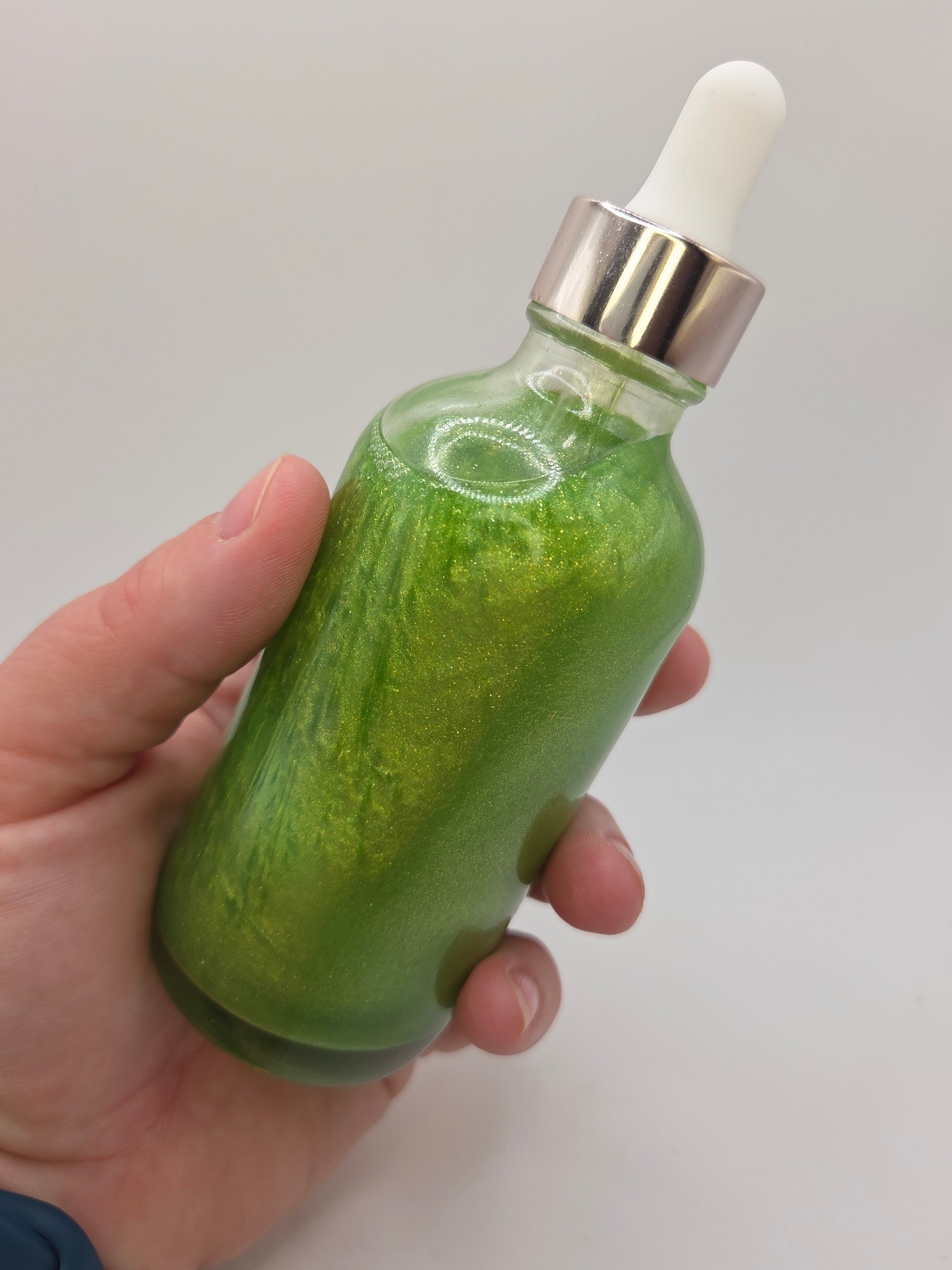 Ingredients: Grapeseed Oil, Avocado Oil, Rice Bran Oil, Hemp Seed Oil, Squalane Oil, Jojoba Oil, Caprylic/Capric Triglycerides, Fragrance Oil, Mica, Rosehip Seed Oil, Vitamin E, Eco Glitter