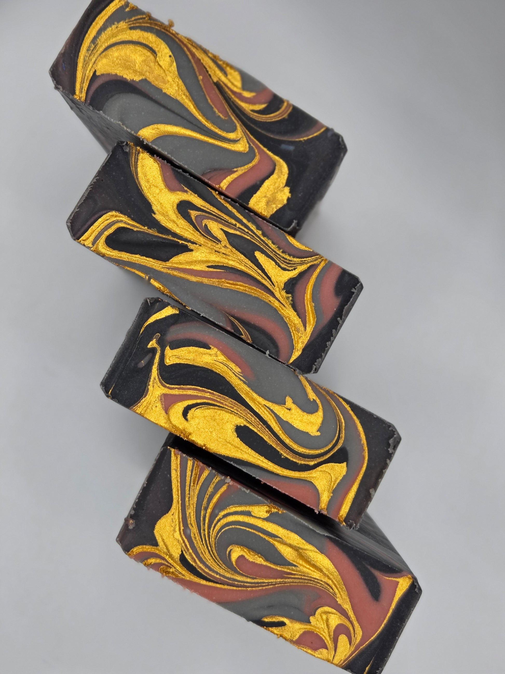 Ingredients: Olive Oil, Distilled Water, Coconut Oil, Shea Butter, Sodium Hydroxide, Hemp Seed Oil, Castor Oil, Fragrance Oil, Goats Milk, Kaolin Clay, Mica, Honey Powder, Sodium Lactate, & Tussah Silk Fibers