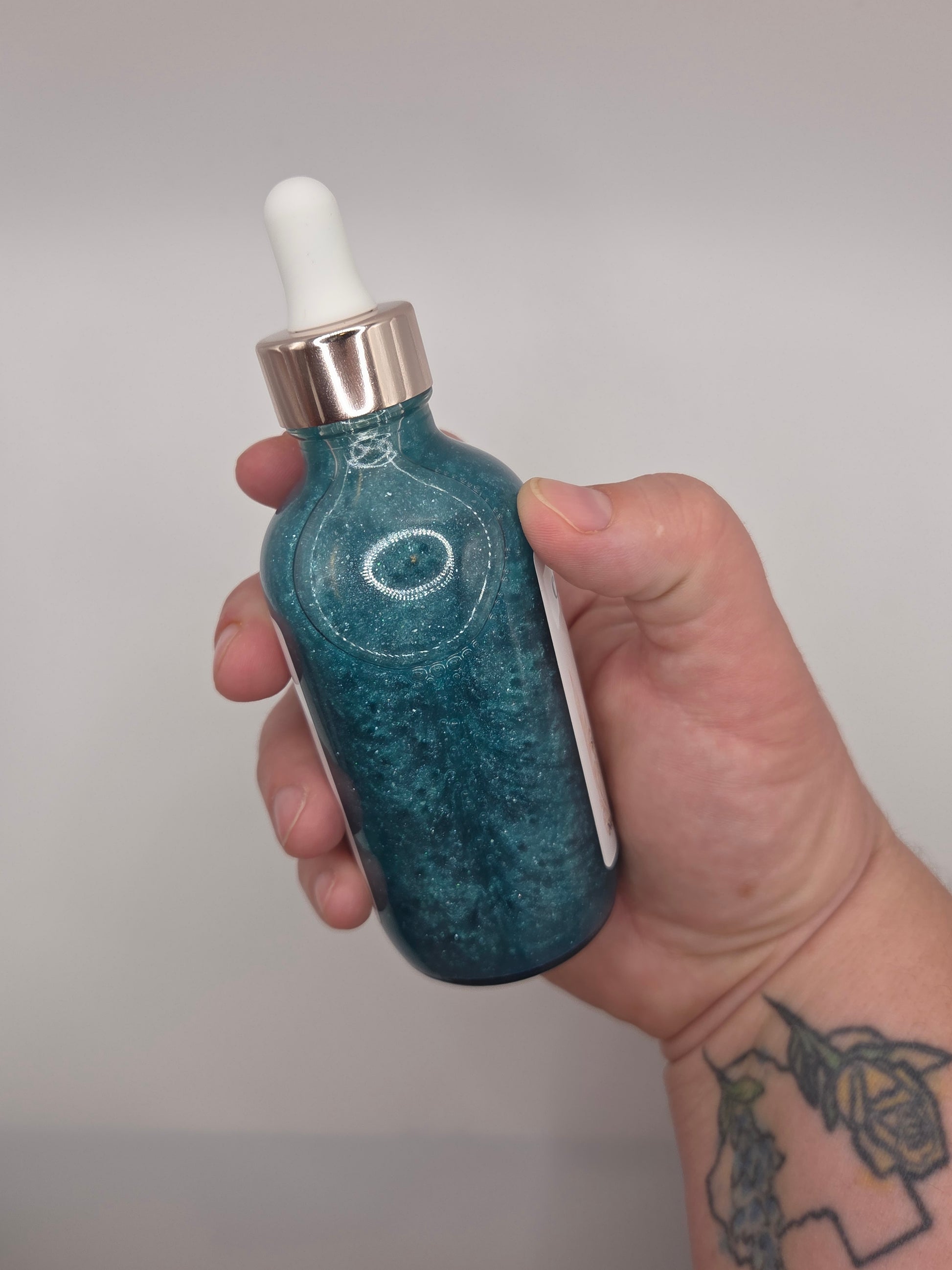 Ingredients: Grapeseed Oil, Avocado Oil, Rice Bran Oil, Hemp Seed Oil, Squalane Oil, Jojoba Oil, Caprylic/Capric Triglycerides, Fragrance Oil, Mica, Rosehip Seed Oil, Vitamin E, Eco Glitter